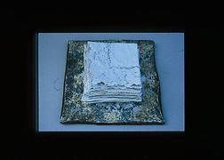 my mother's handkerchieves, dipped in liquid clay, folded and left to